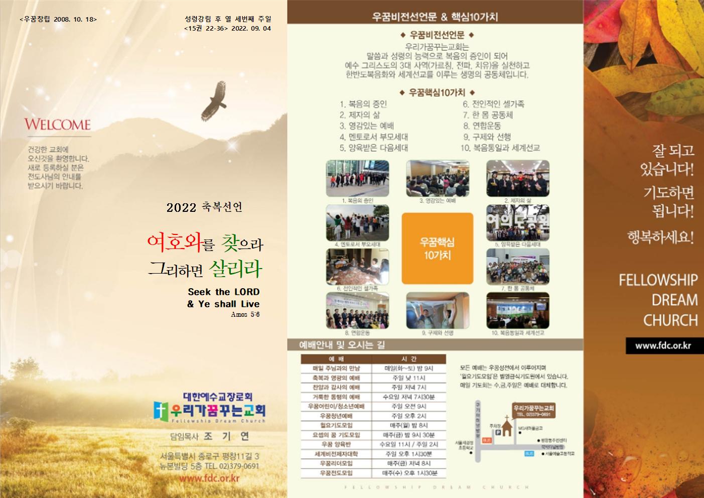 | 이전글 | 2022/09/11우꿈주보 | 운영자 | 2022.09.14 | 1 | 502 |