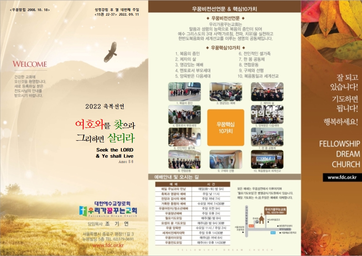| 이전글 | 2022/09/18우꿈주보 | 운영자 | 2022.09.18 | 1 | 556 |