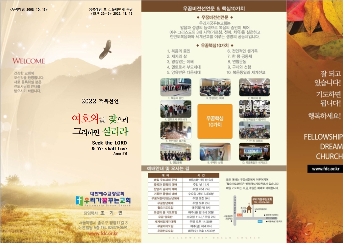 | 이전글 | 2022/11/20우꿈주보 | 운영자 | 2022.11.20 | 1 | 461 |