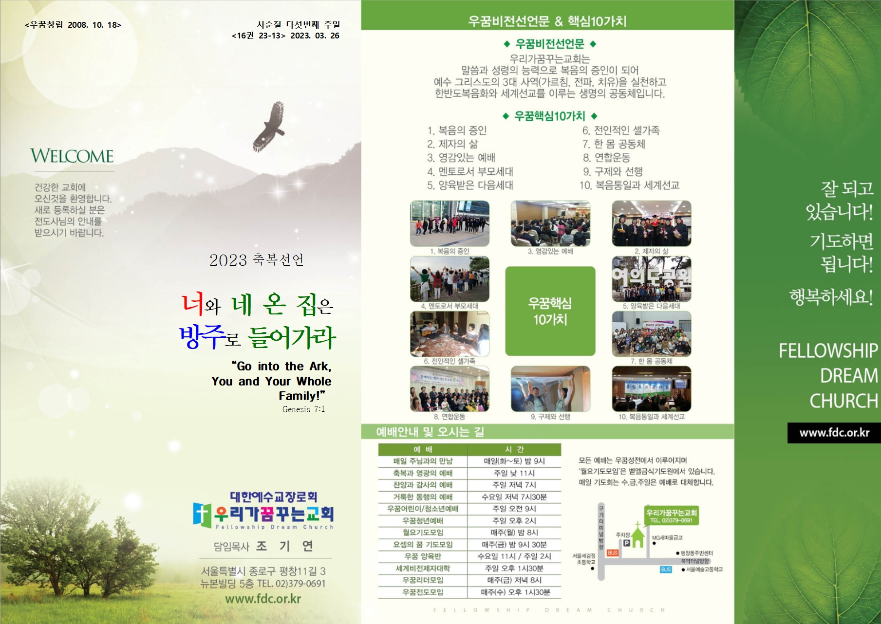 | 다음글 | 2023/03/19우꿈주보 | 운영자 | 2023.03.19 | 1 | 385 |