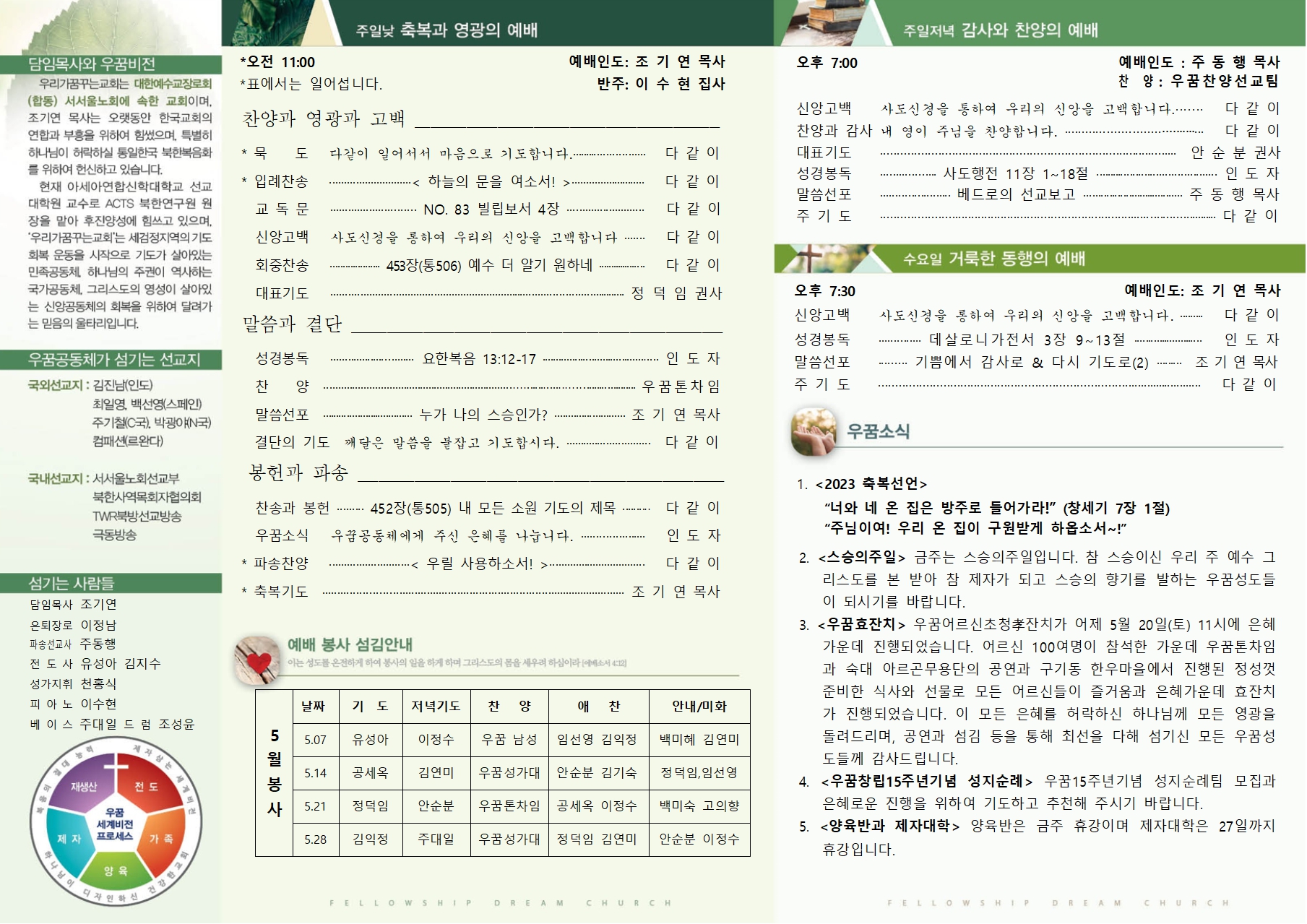 | 다음글 | 2023/05/14우꿈주보 | 운영자 | 2023.05.14 | 1 | 412 |