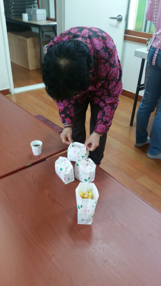 혹시나 어르신들의 치아를 걱정해서 딱딱한 팝콘이 있을까봐 가려내는 세심한 배려가 감동적이었습니다.