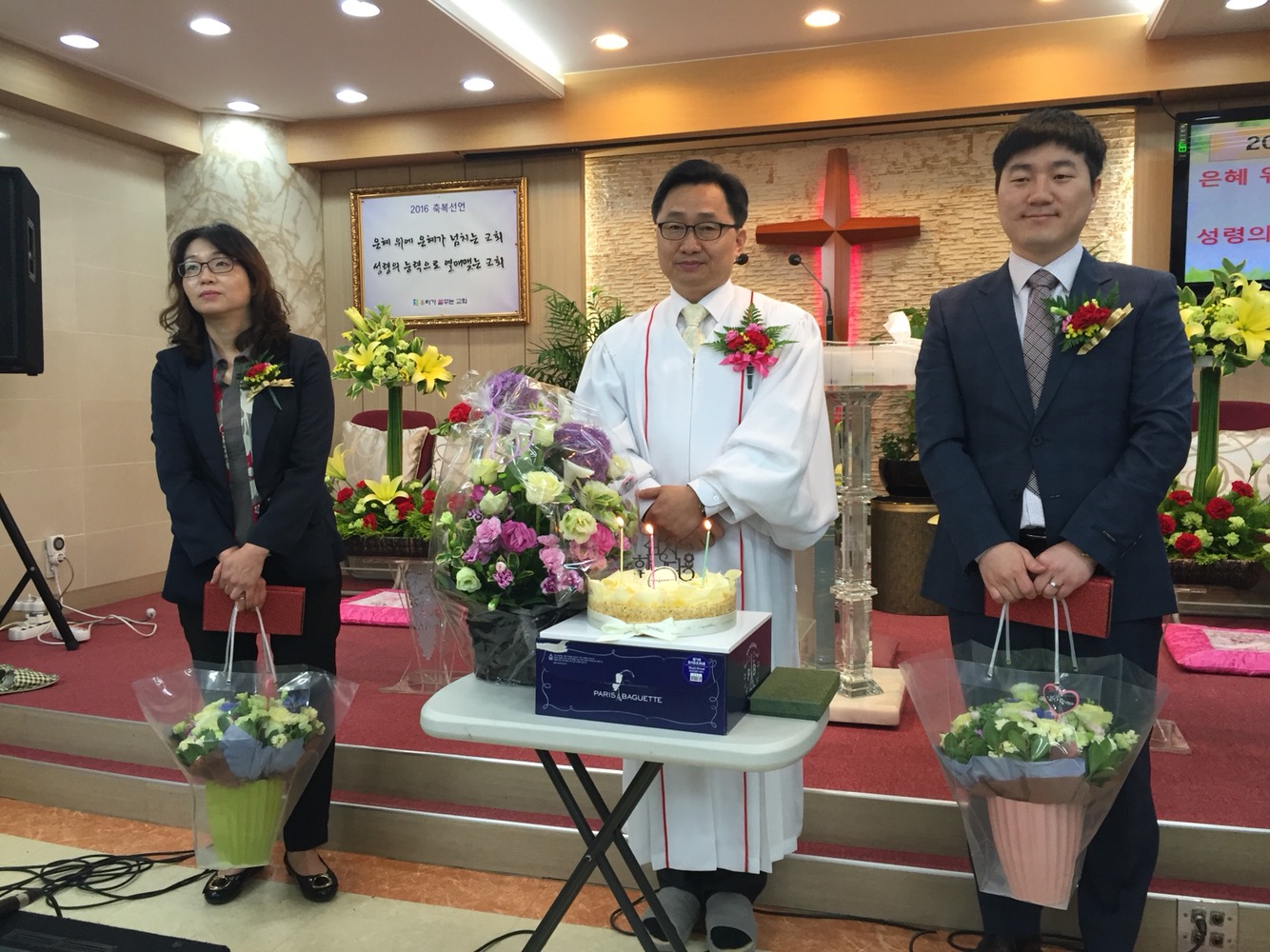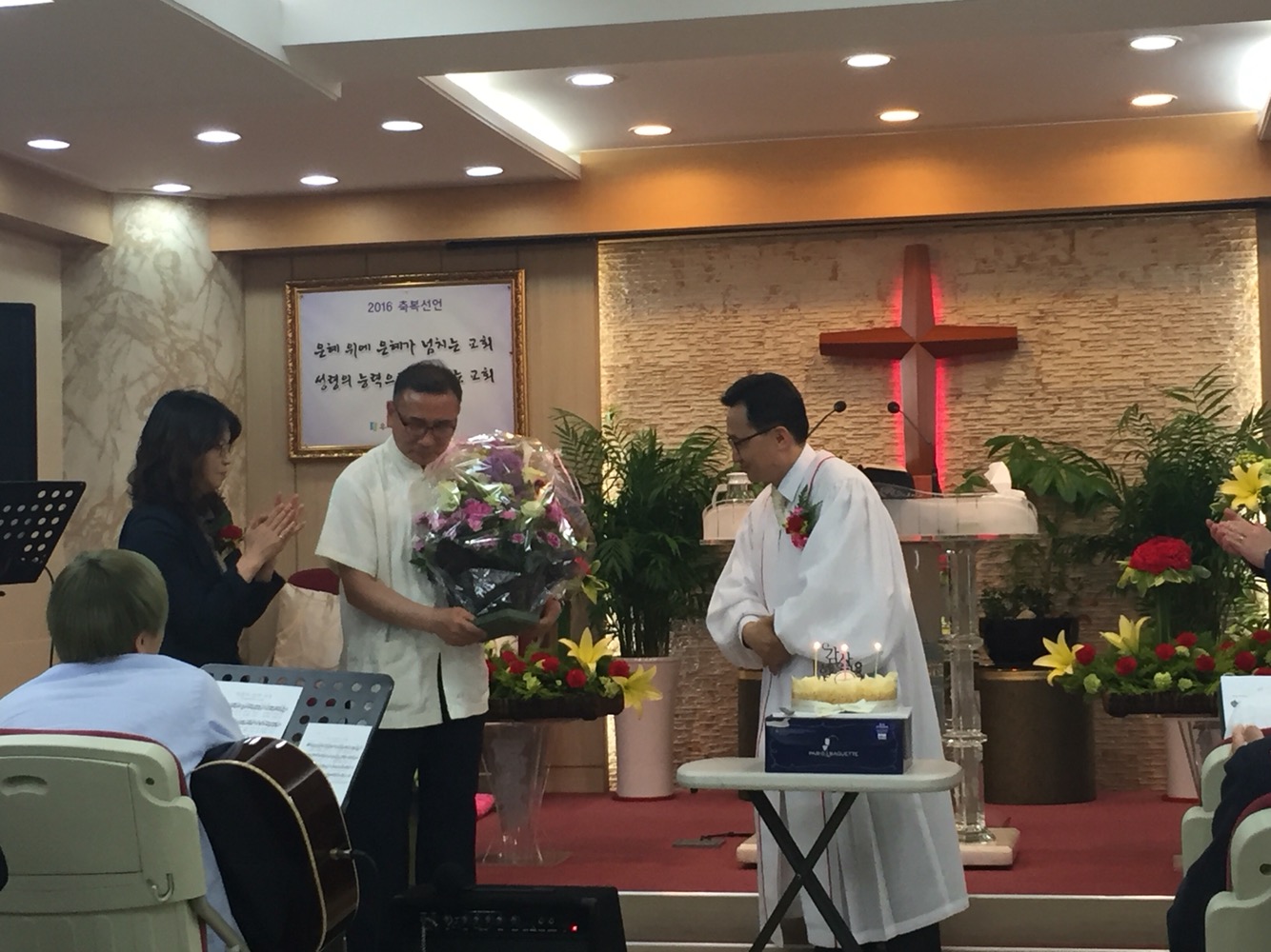 마음으로 모든 성도님들이 정성과 사랑을 담아 꽃과 케익, 선물 증정식이 있었습니다.
