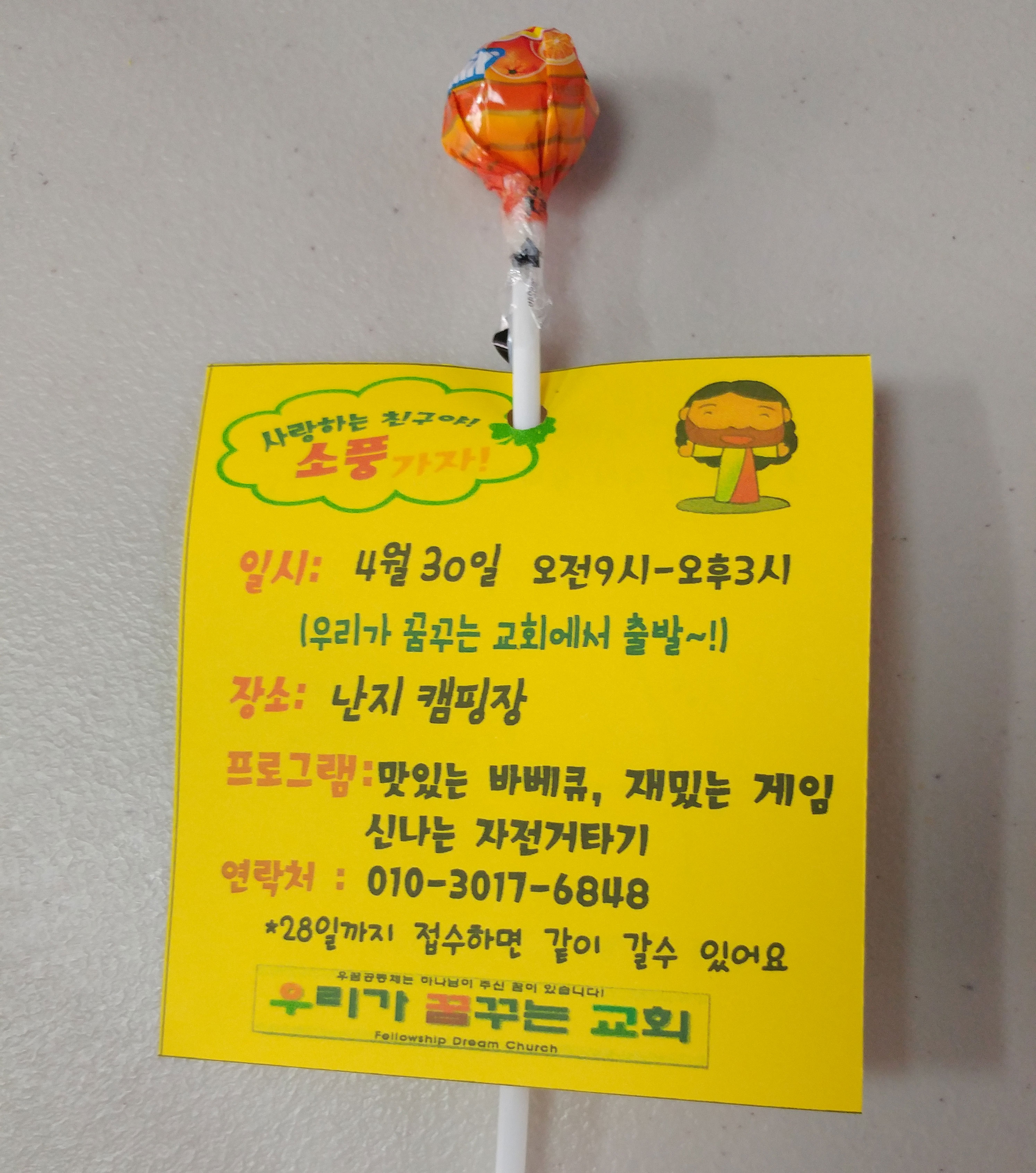 전도의 결과 3명의 아이가 참여하고 싶다고 연락을 받기도 했는데요! 당일에는 사정이 있어 함께 하지 못했지만